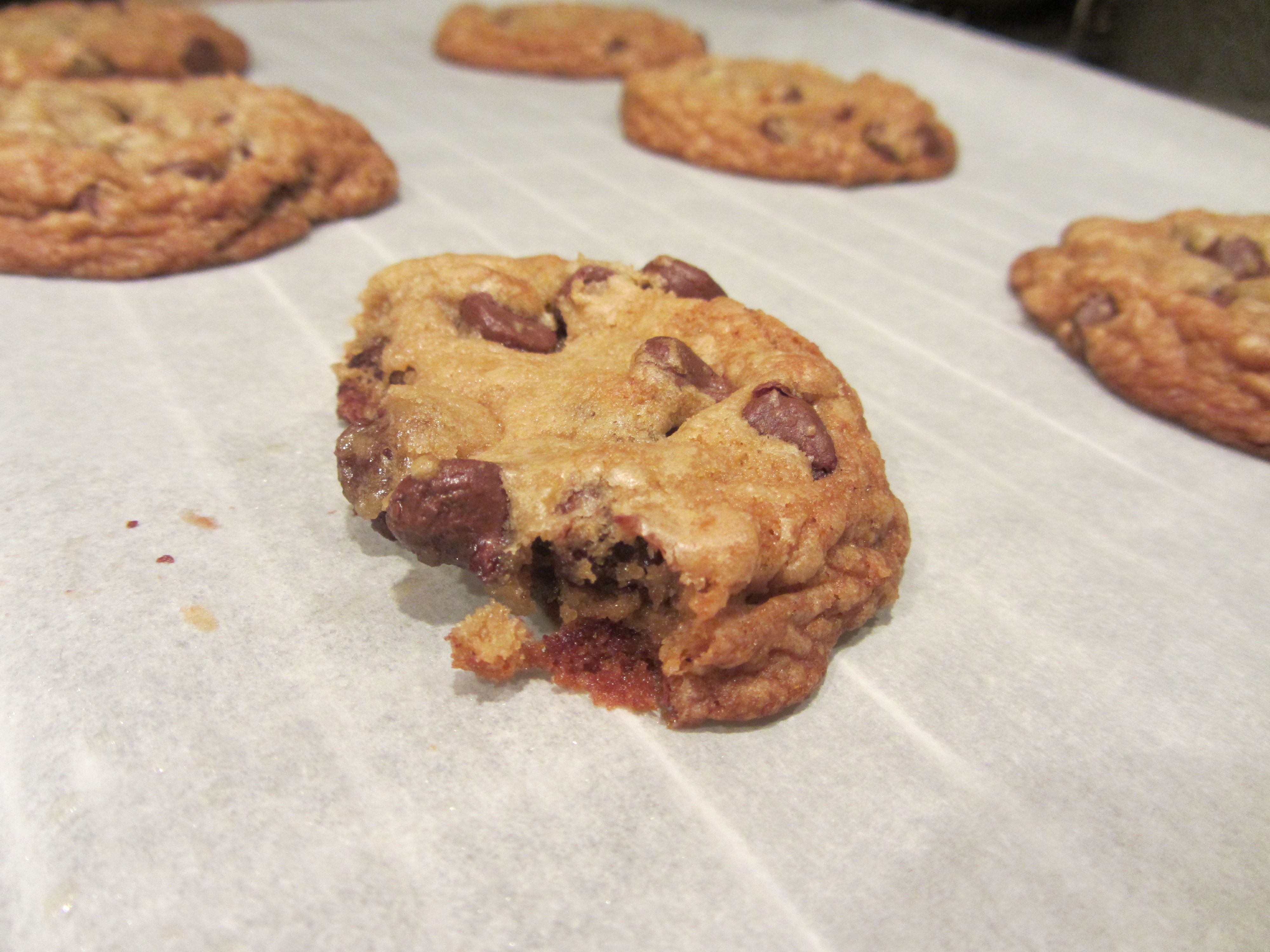Seeing as we only had one type of chocolate chip cookie in the house, last Wednesday seemed to be another day for cookie baking. Next up was Alton’s puffy chocolate chip cookie.