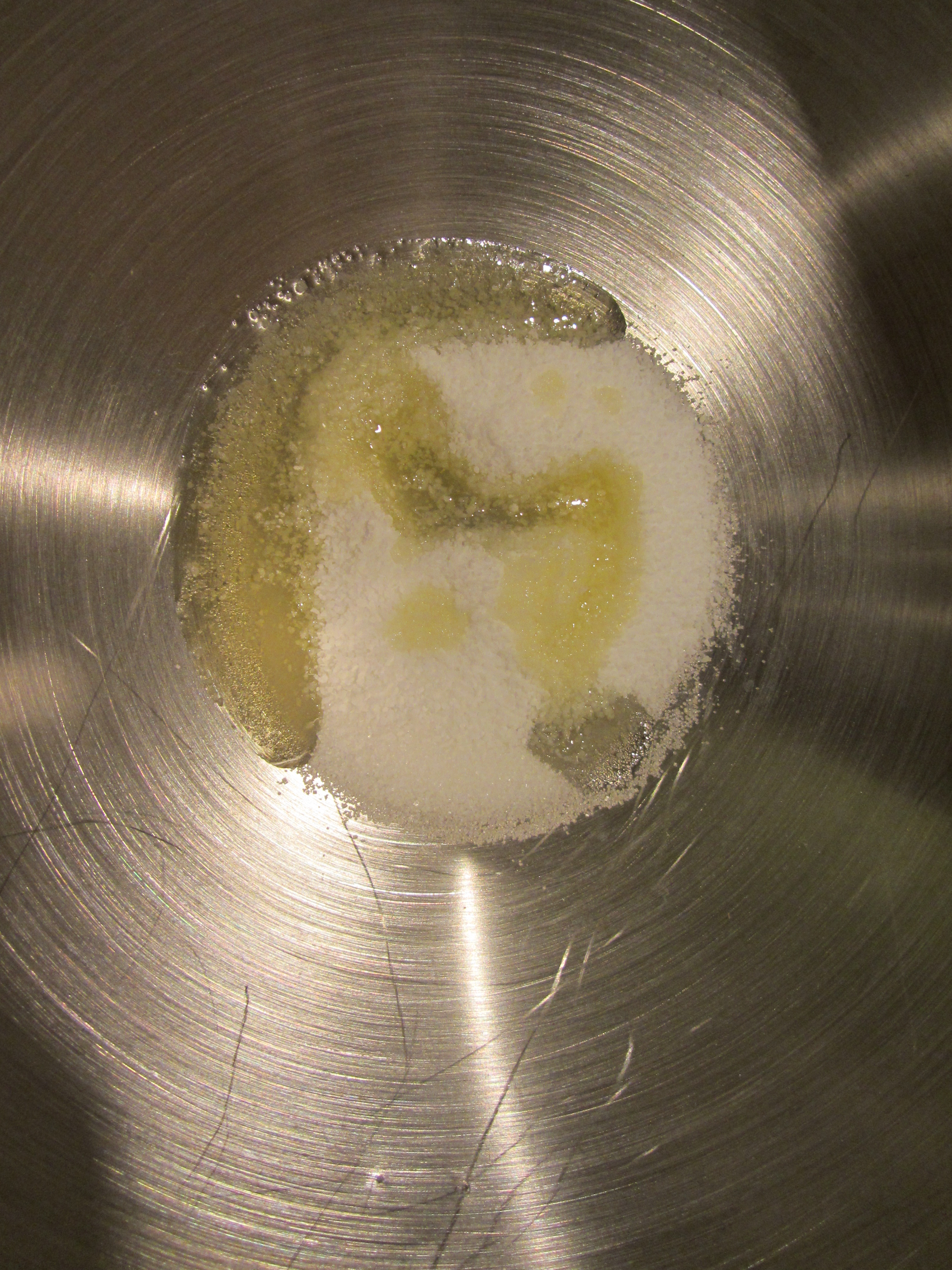These cookies begin with melting two sticks of butter in a saucepan over low heat.
