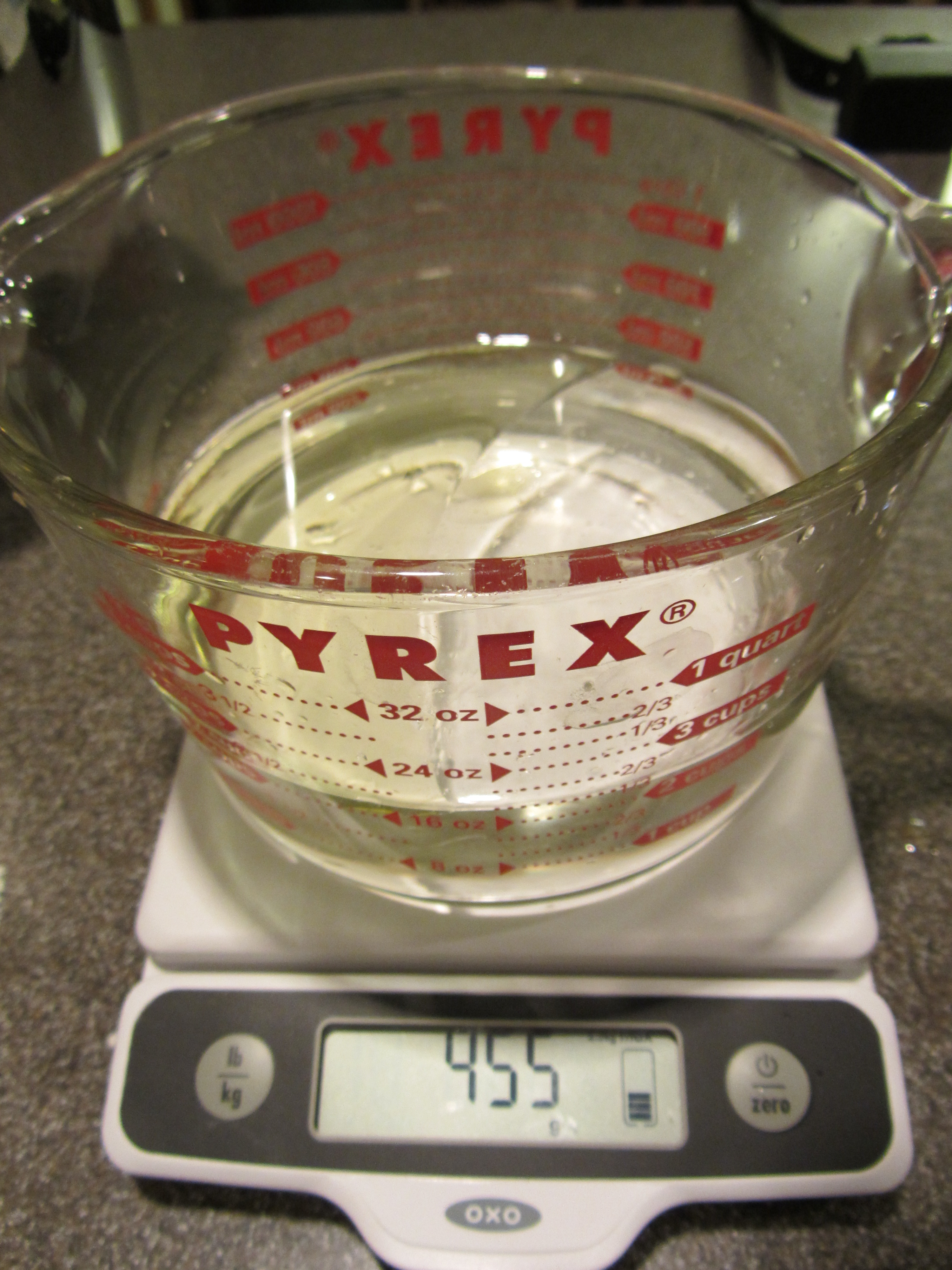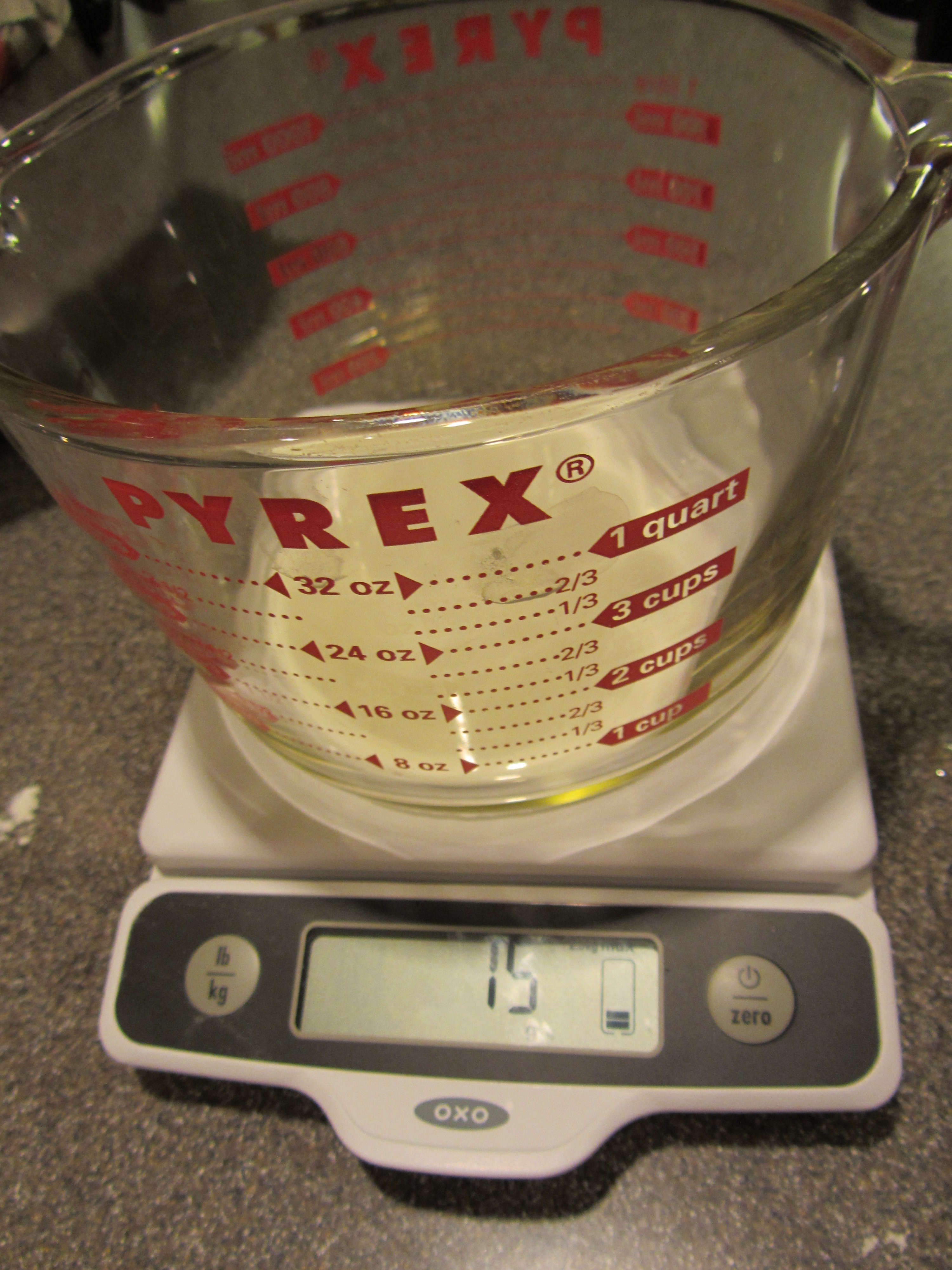From title alone, I was least excited to make Alton’s thin chocolate chip cookies, as I think of myself as someone who generally prefers cookies on the chewy side. I set out last Tuesday evening to whip up a batch, figuring they would be the perfect thing to greet Ted when he returned home from his evening running group. To start these cookies, combine one egg, 2 oz. of whole milk, and 1.5 t of vanilla, and allow the liquid to come to room temperature.