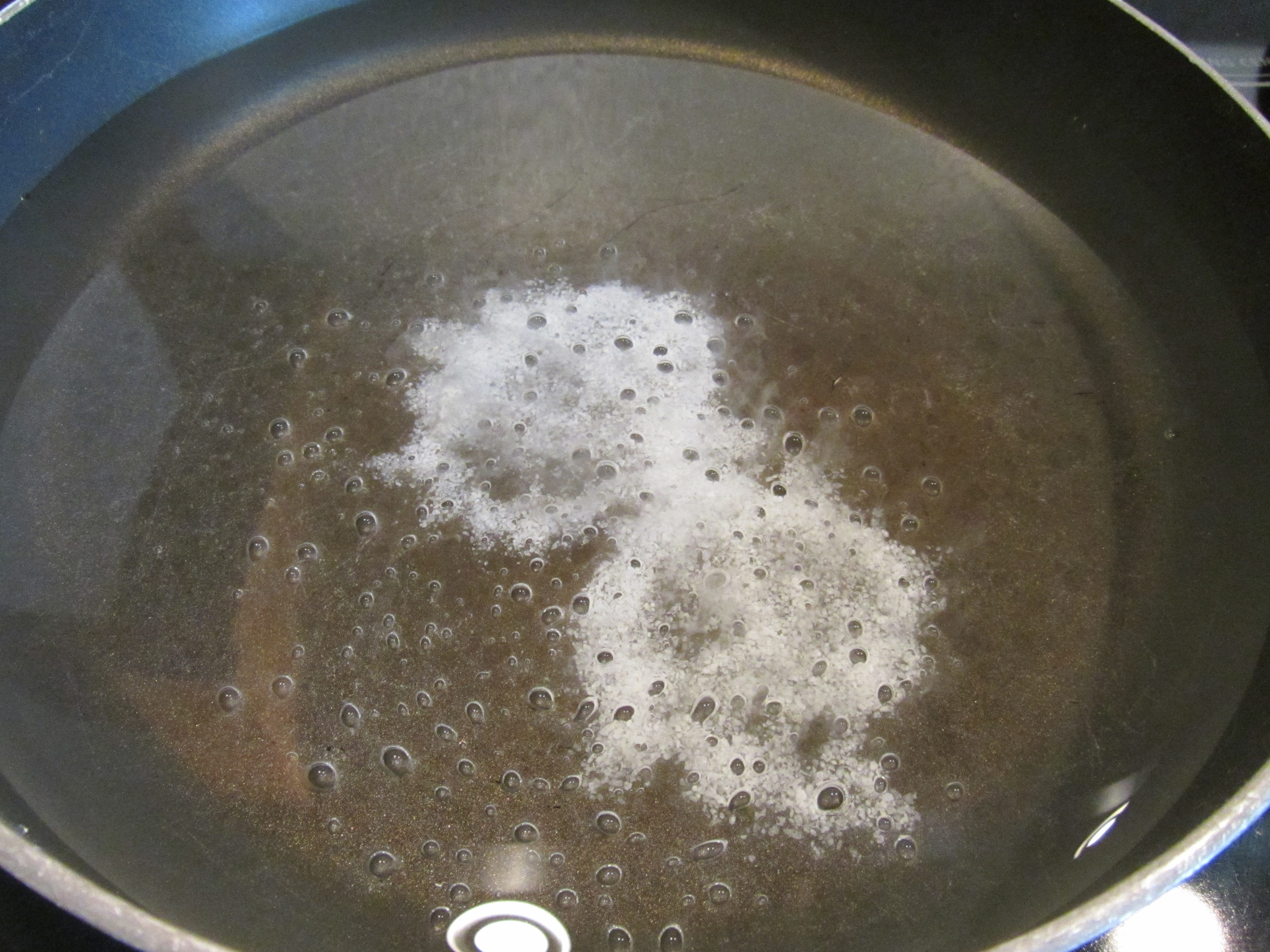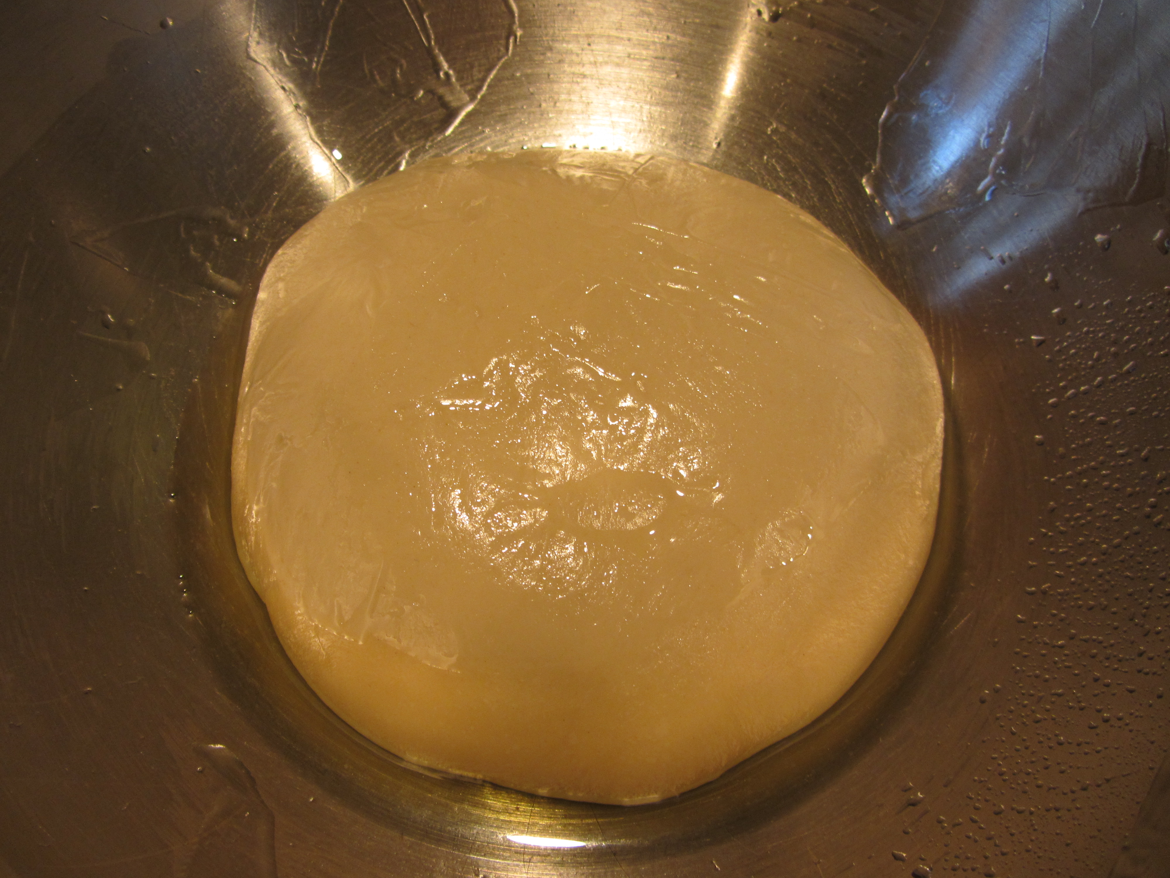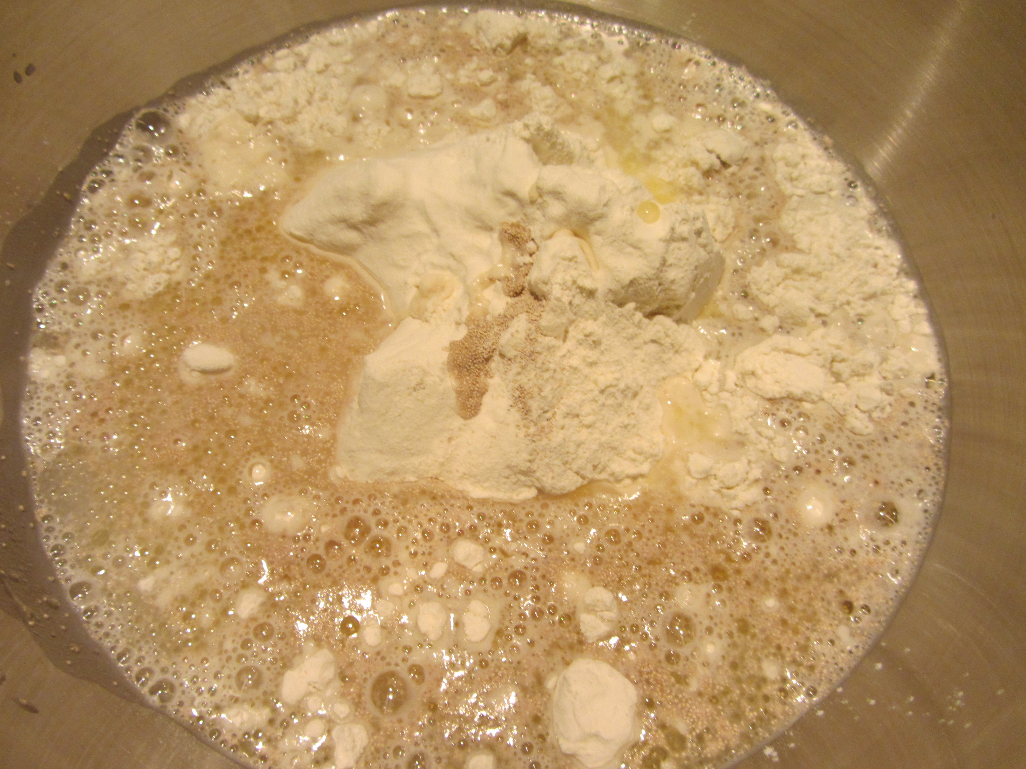 Meanwhile, sift together 2 1/4 C of bleached all-purpose flour, 1 t of salt, and 1 t (plus an extra pinch) of baking soda.