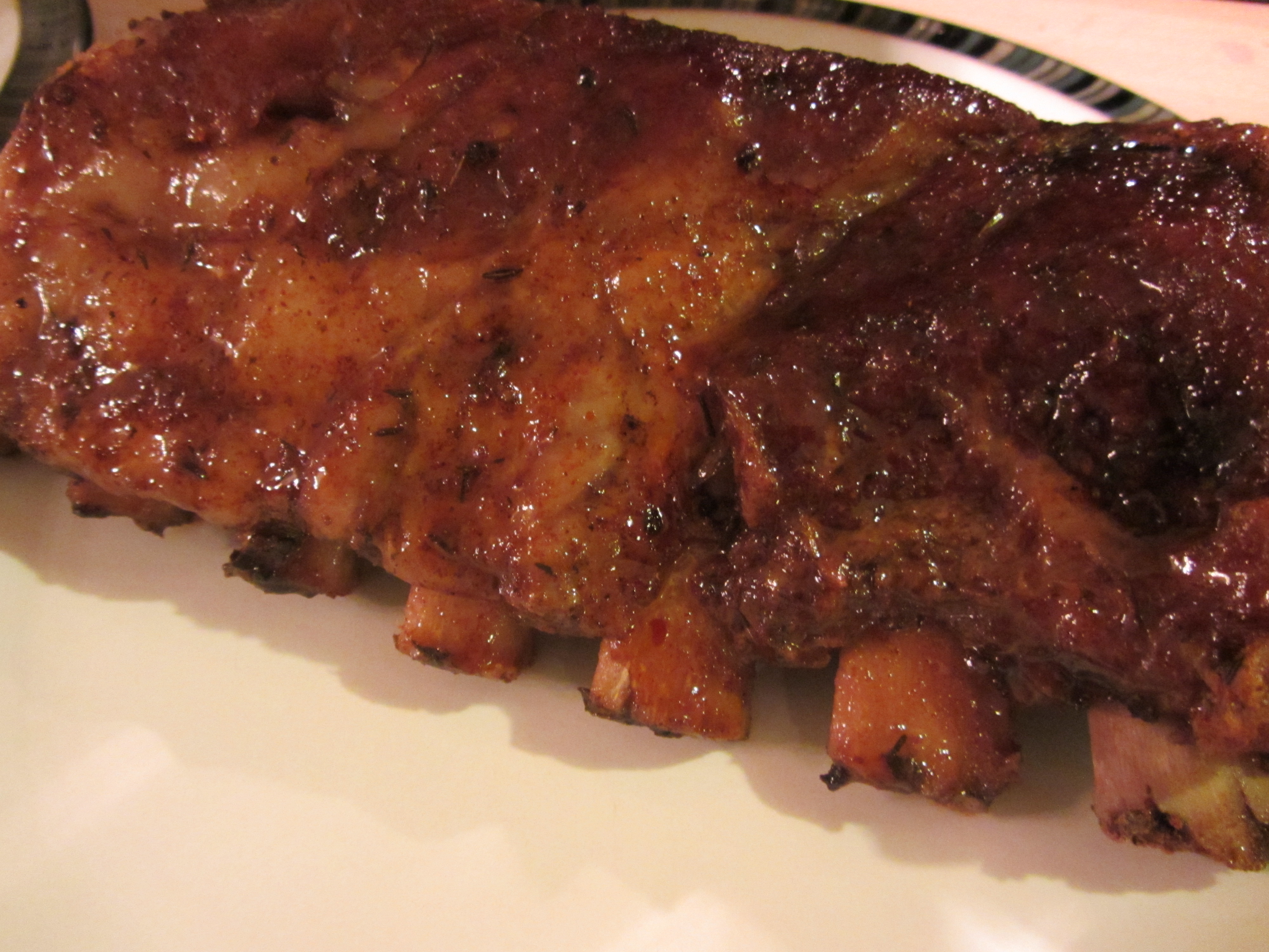 Ribs are not something I eat on a regular basis. In fact, chances are that I will opt for a pulled pork sandwich, or something else of the sort, over a slab of baby backs. I decided to make my foray into rib making the day before I left to celebrate Christmas with my family. Amid the melee of wrapping gifts and trying to jigsaw them safely into my suitcase, I was unsure if I would really have the time to also make ribs for dinner. As always, Alton Brown made his recipe for baby back ribs look very, very easy, so I figured… why not?
