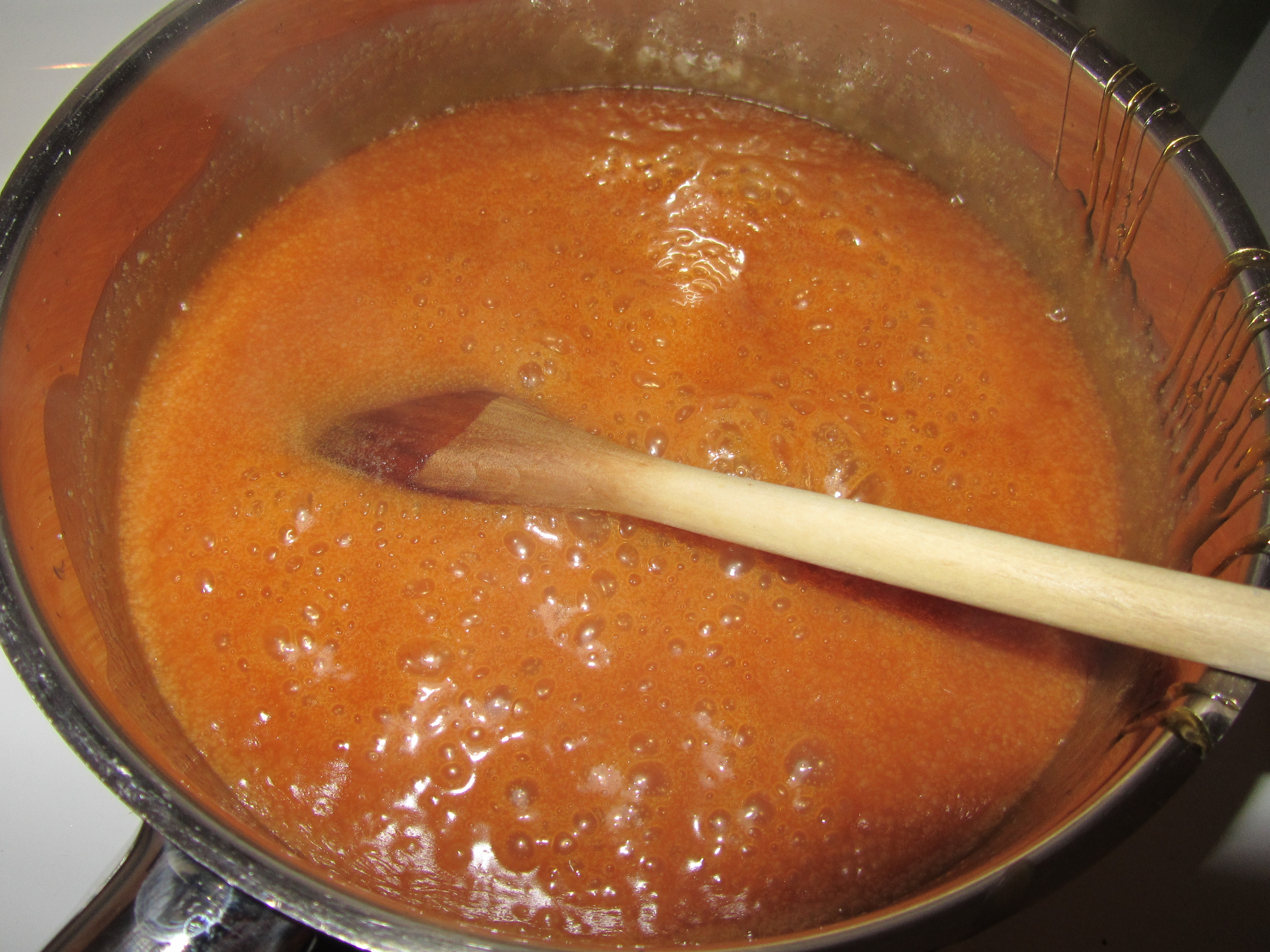 Sauce returning to a simmer.