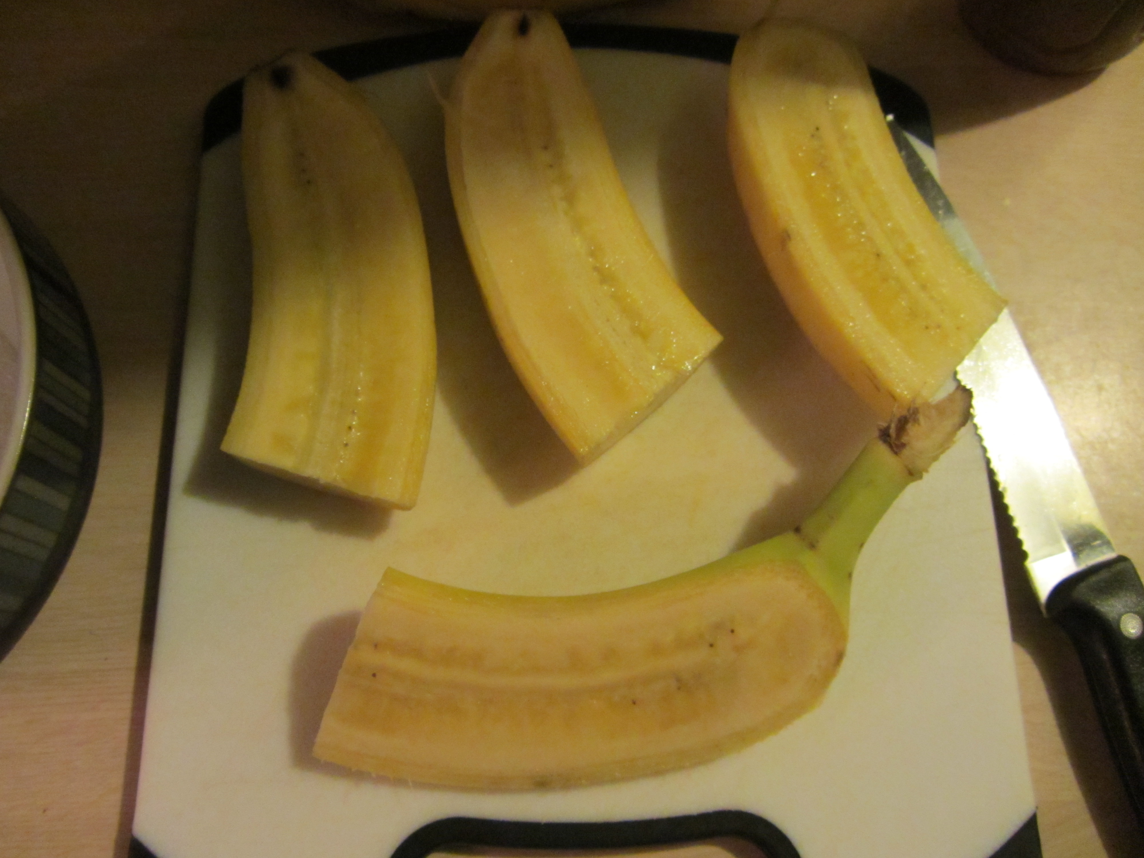 Bananas, transferred to a plate.