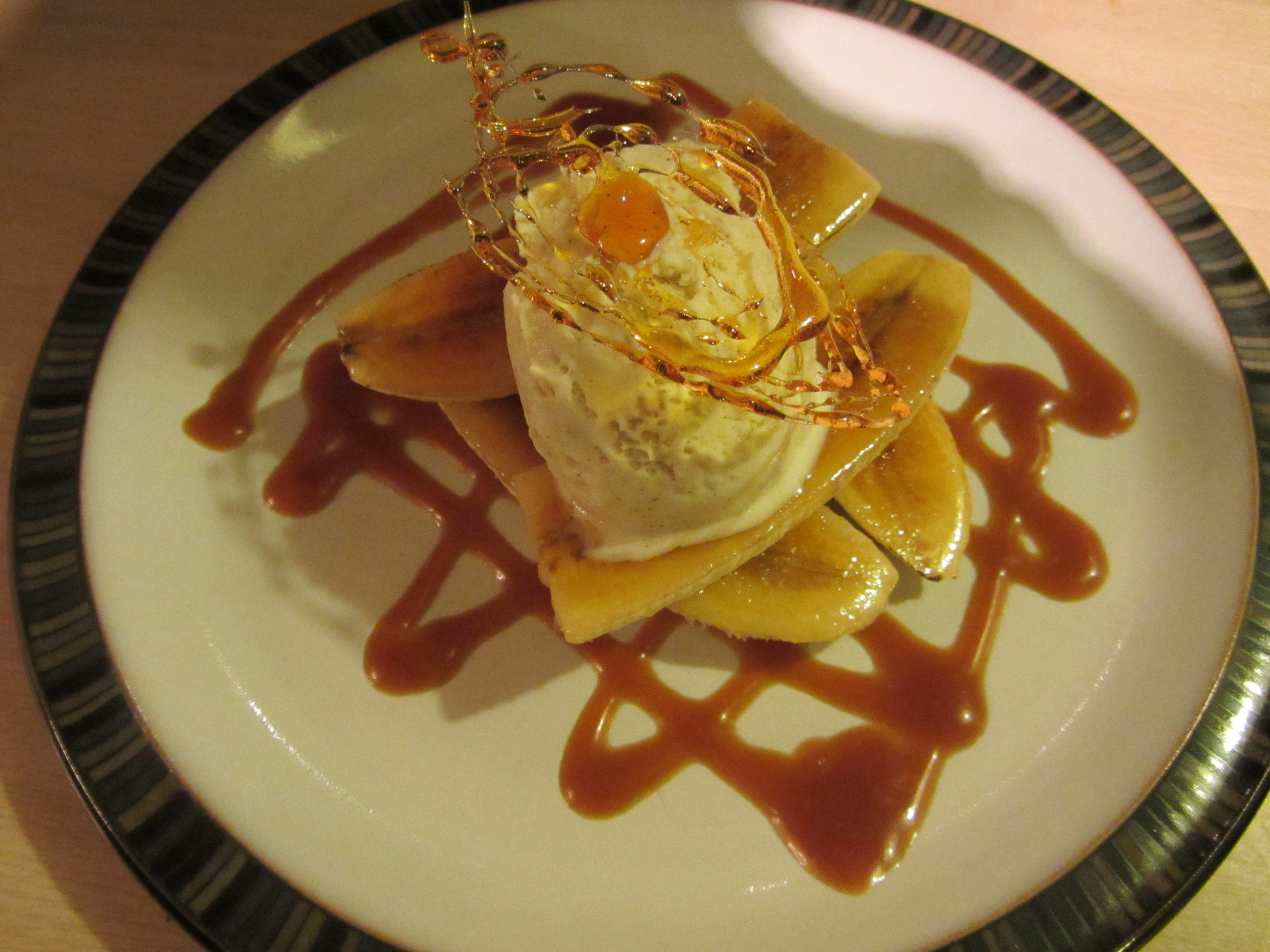 Alton’s bananas foster with vanilla ice cream.