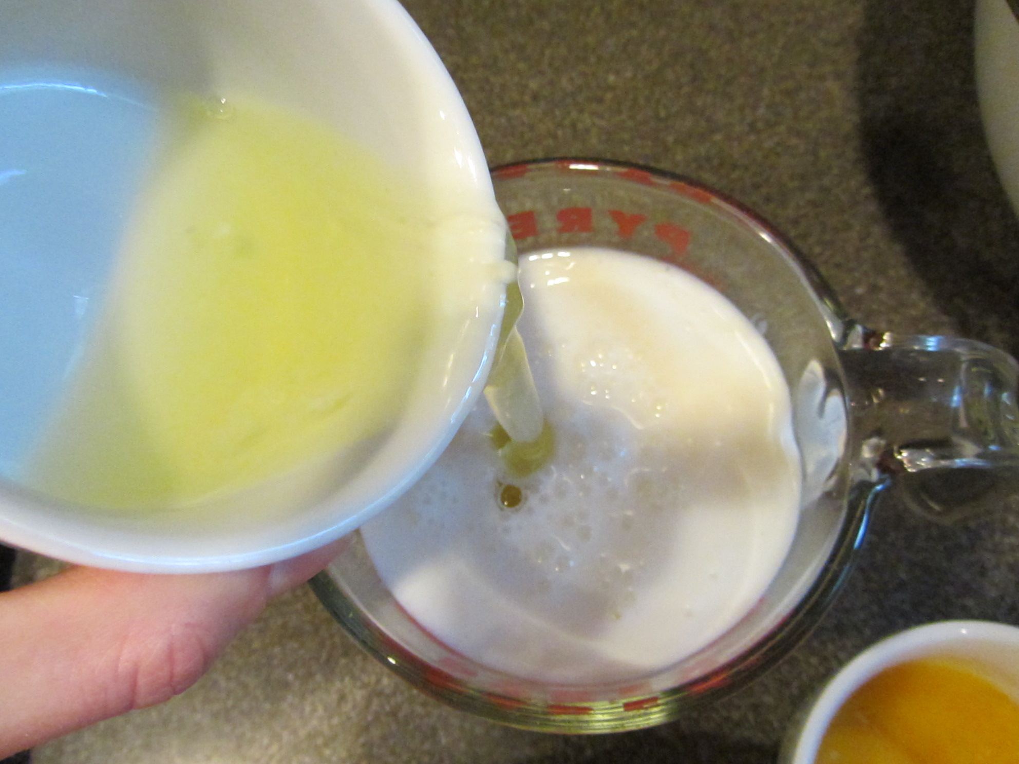 A cup of cream and a cup of buttermilk.