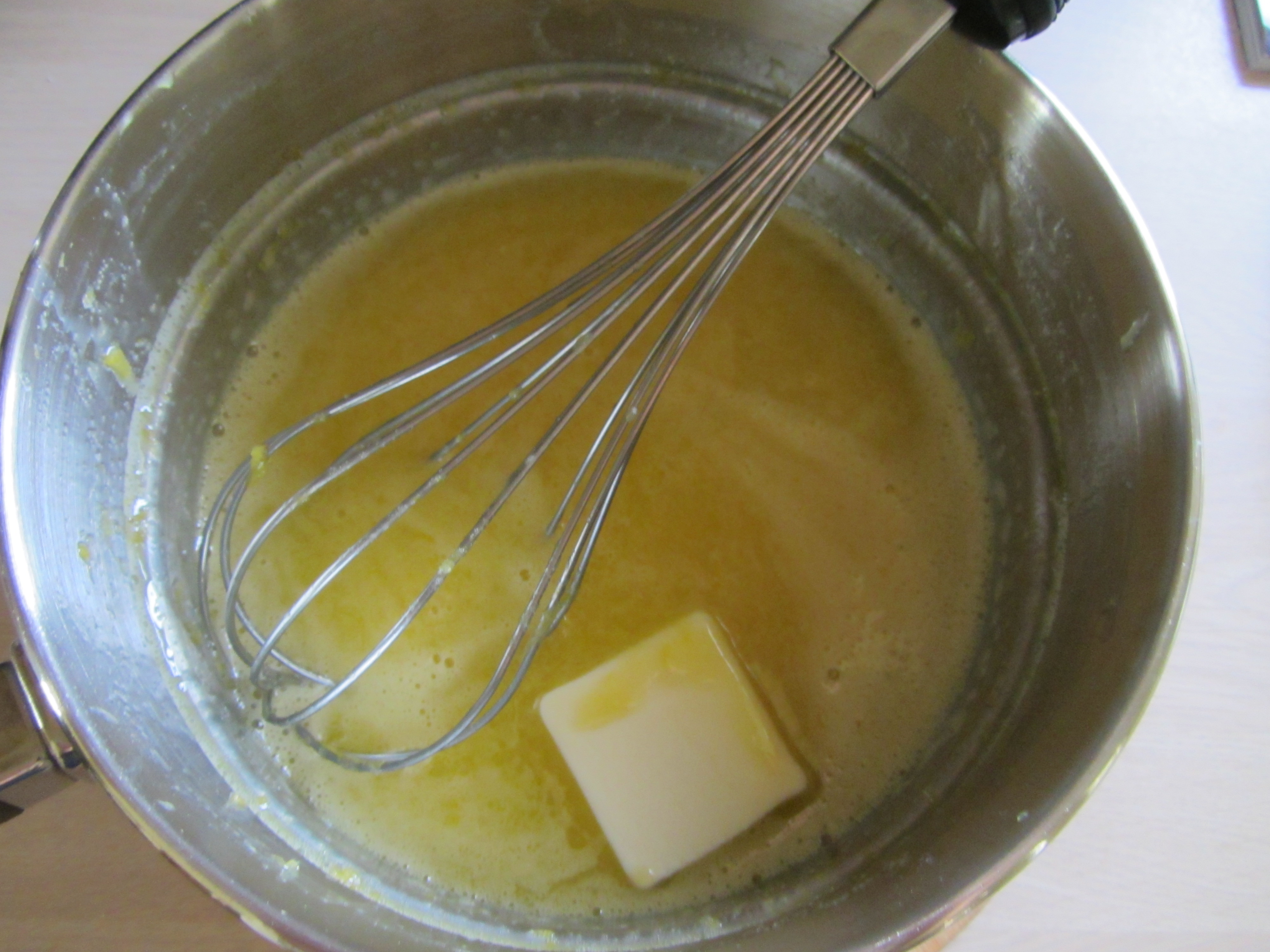 Once your pan is hot, lube the pan with butter, distributing it evenly with a pastry brush.