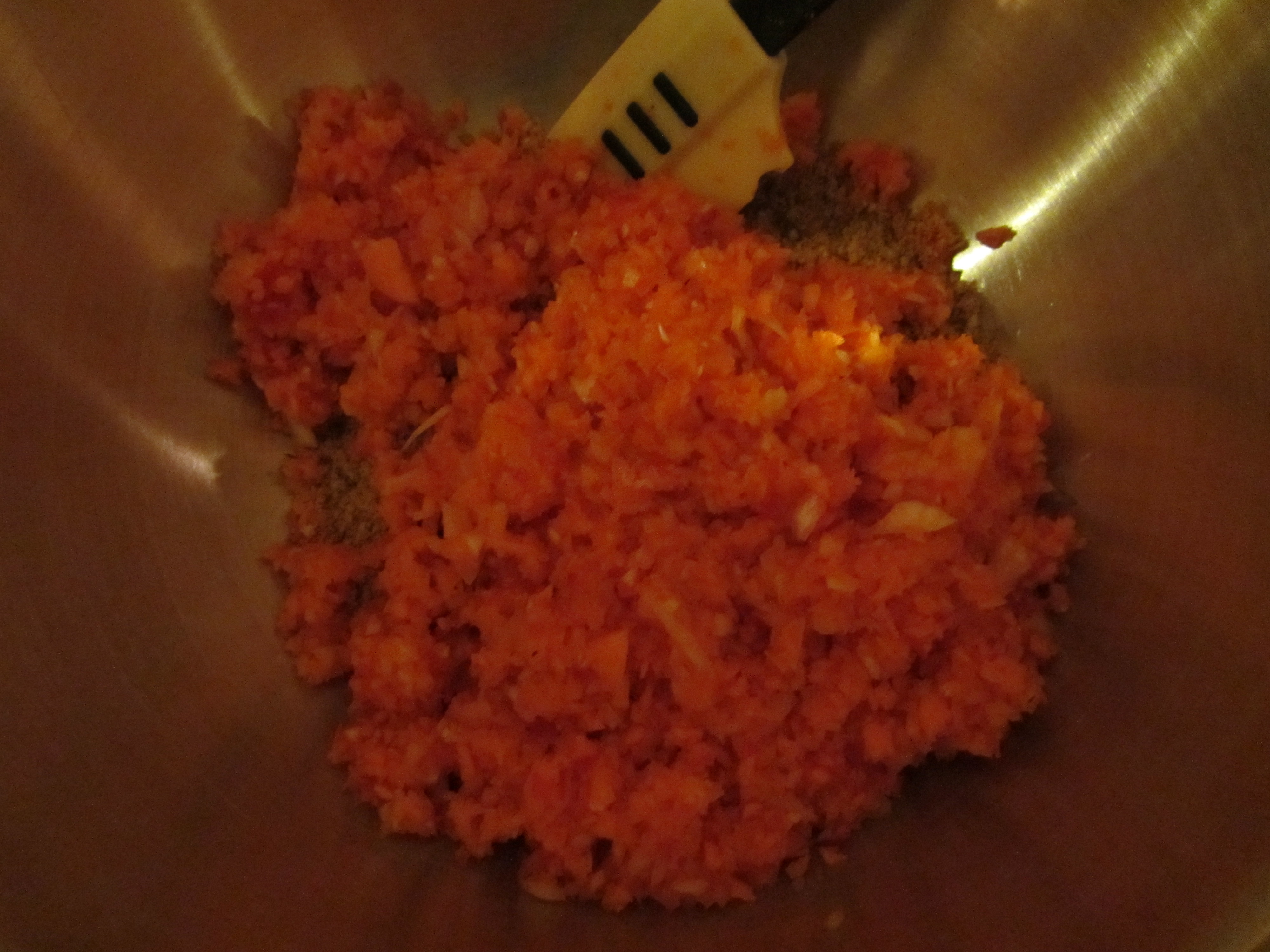 Using gloved hands, use your fingertips to thoroughly mix all of the ingredients. Refrigerate the meat mixture for 1-24 hours.