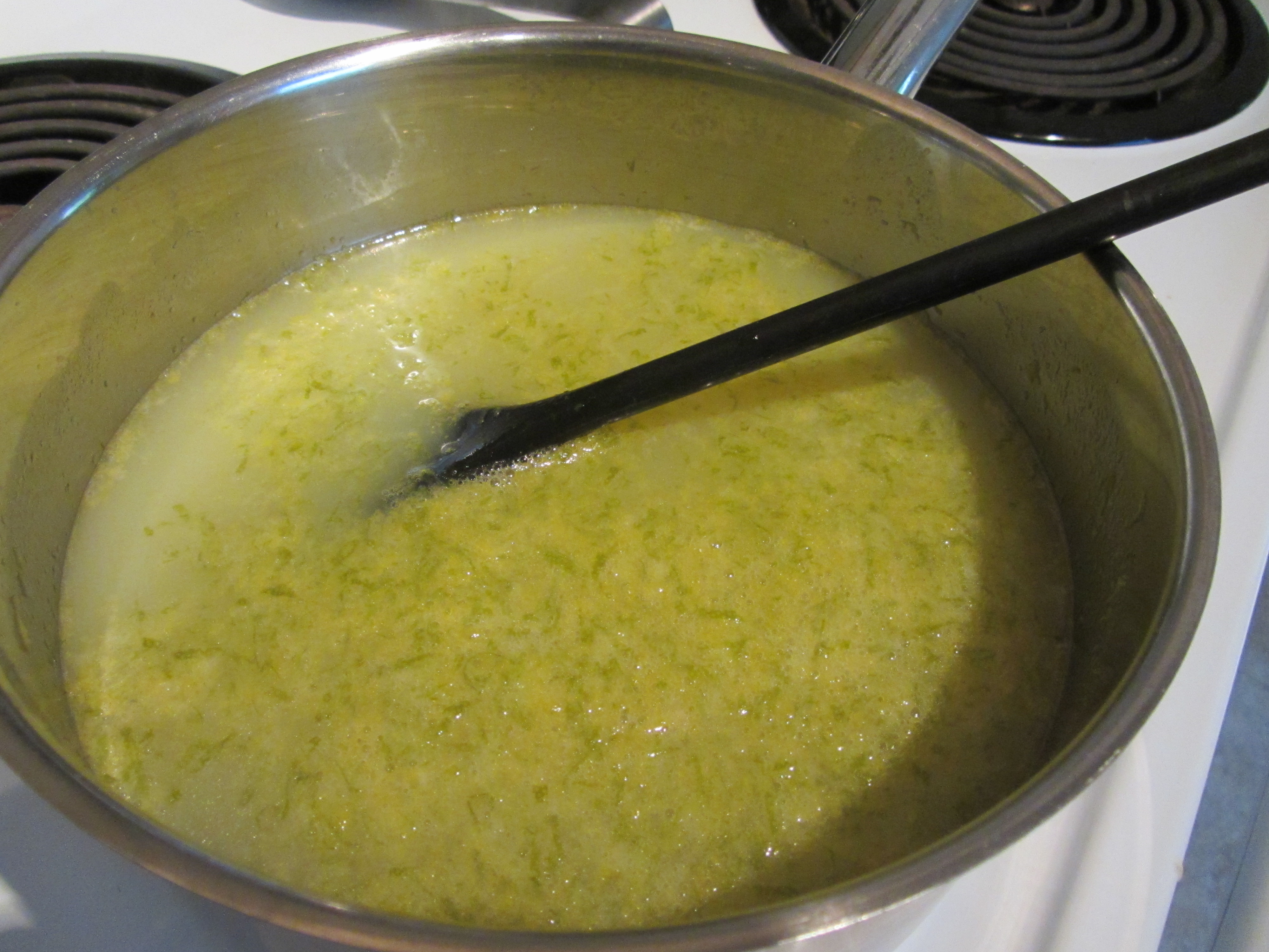 Pour the mixture back into the saucepan and check its temperature with an instant thermometer – it should be right about 160 degrees. My temperature was quite a bit lower than this, so I continued to heat my custard until it reached 160.