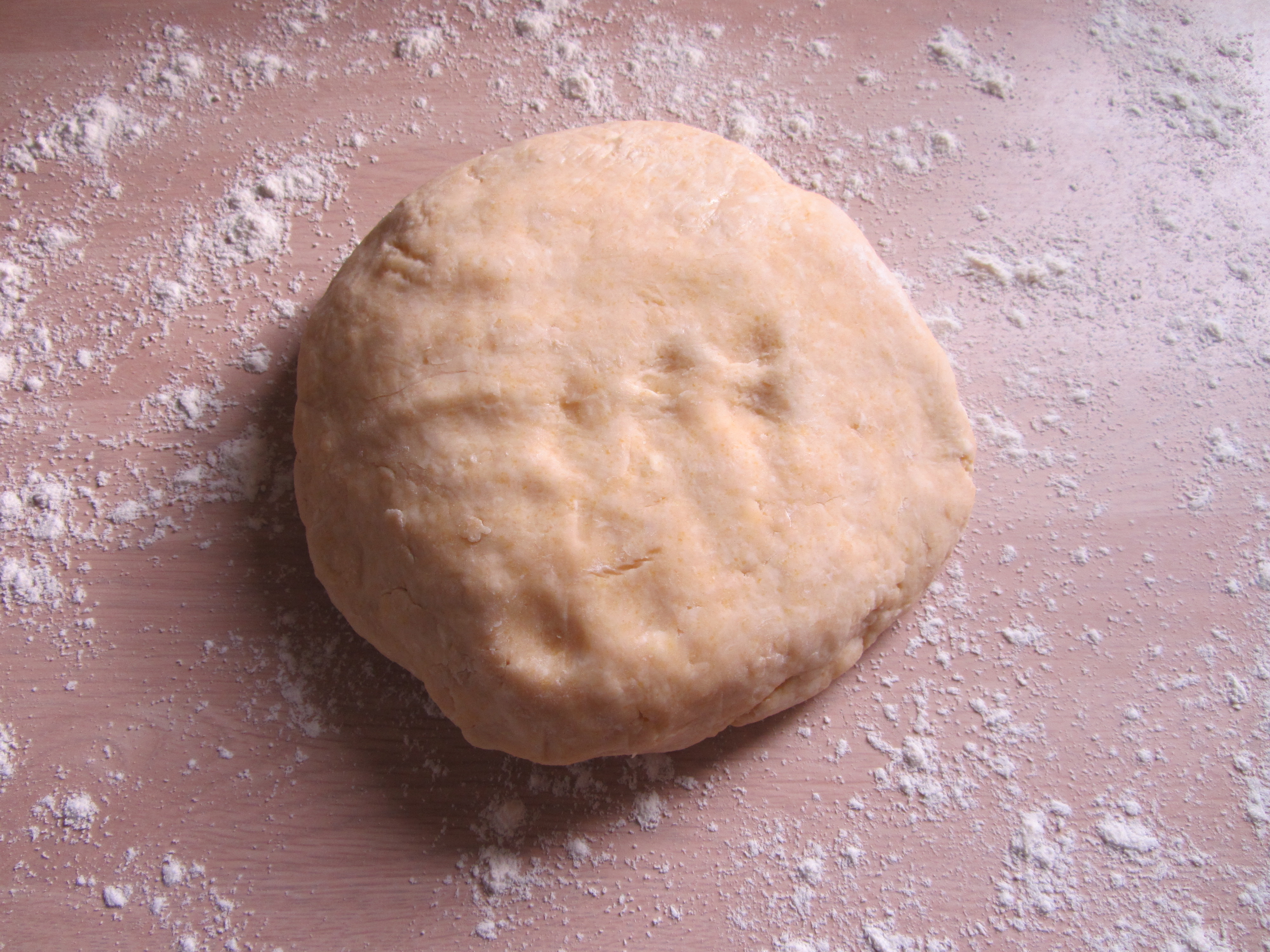 I ended up running out of time to finish my pie in the day I started it, so I refrigerated my filling and dough overnight. The next morning, I pulled my dough and filling from the refrigerator, allowing them both to warm up for a few minutes. I sprinkled my work surface with flour and turned my dough out onto it. I could tell immediately that I should have listened to my gut the day before, as my dough was way too crumbly.