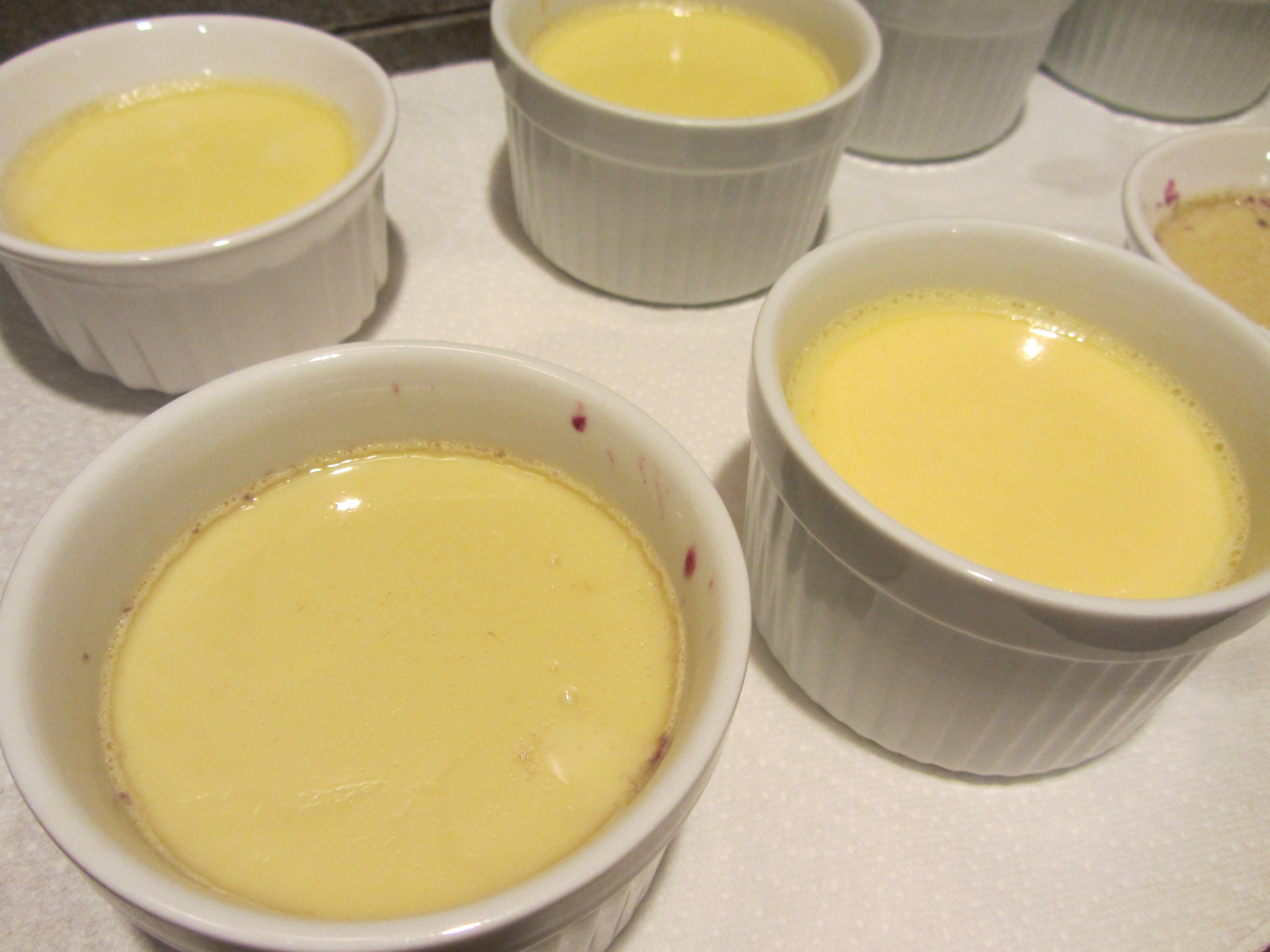 Custard in ramekins. I wonder which ones are blueberry? So much for mystery.